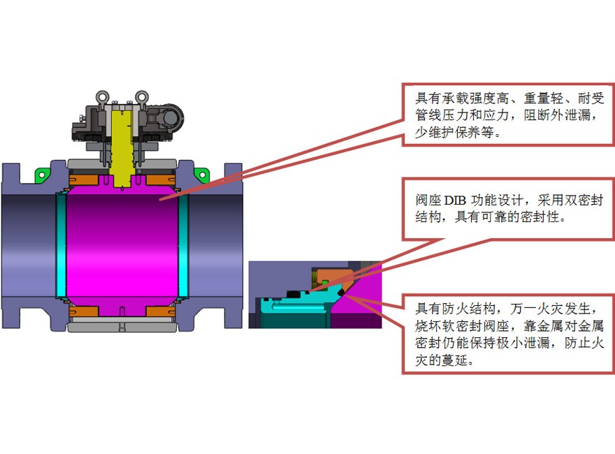 固定球管線球閥是專門為天然氣、石化、油田、化工、低溫及水處理工業(yè)等領域的管線而開發(fā)的,在性能上符合美國石油學會API 6D標準的有關(guān)規(guī)定;