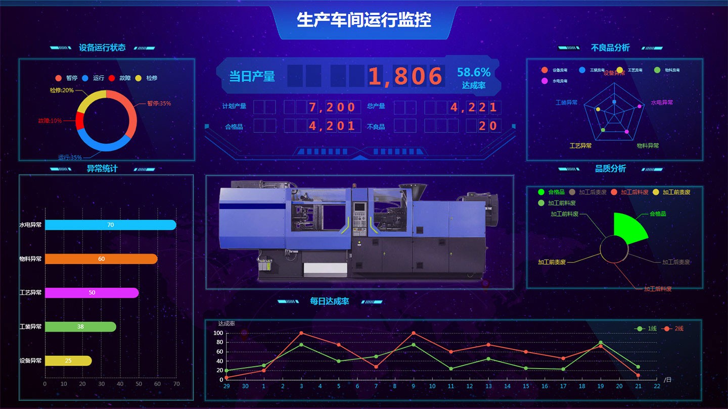 數(shù)據(jù)智能匯總,提取車間管理看板、工廠整體看板,實時更新數(shù)據(jù),提供給管理層決策分析使用。